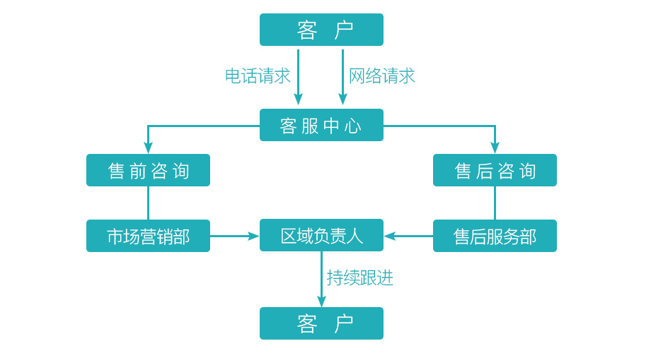 3、無(wú)論客戶是電話請(qǐng)求還是網(wǎng)絡(luò)請(qǐng)求,客服中心都會(huì)根據(jù)客戶需求進(jìn)行分類(lèi)后直接轉(zhuǎn)接相應(yīng)部門(mén),部門(mén)負(fù)責(zé)人會(huì)根據(jù)客戶需求轉(zhuǎn)接區(qū)域負(fù)責(zé)人,區(qū)域負(fù)責(zé)人將與客戶之間對(duì)接高效快捷。