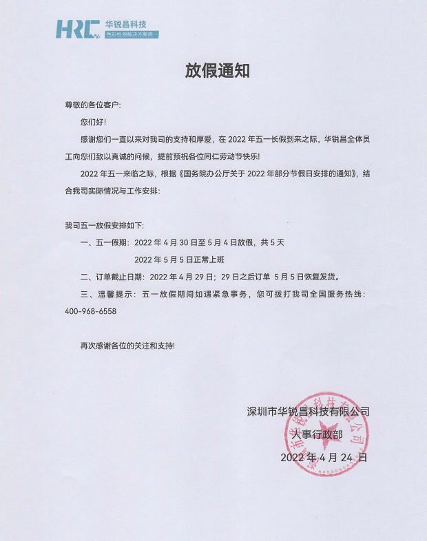 感謝您們一直以來對我司的支持和厚愛,在2022年五一長假到來之際,華銳昌全體員工向您們致以真誠的問候,提前預(yù)祝各位同仁勞動節(jié)快樂!